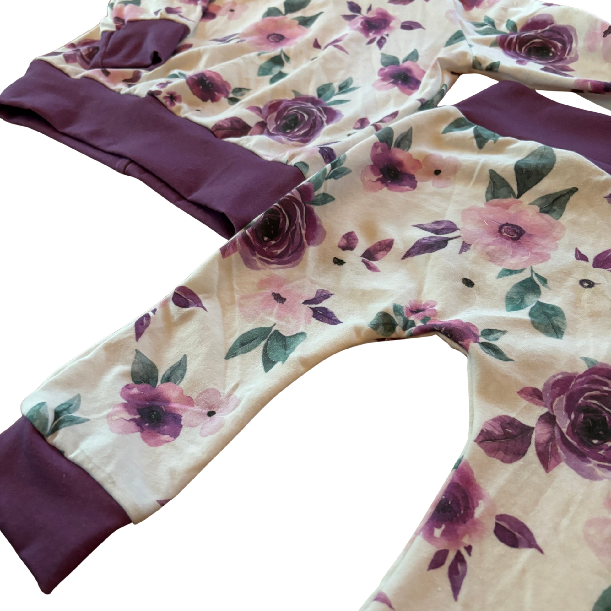 Super soft and airy playsuit featuring beautiful purple roses.